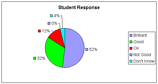 of the responses were rated as “Brilliant”, 32% rated “Good”, 12% OK. 0% rated
